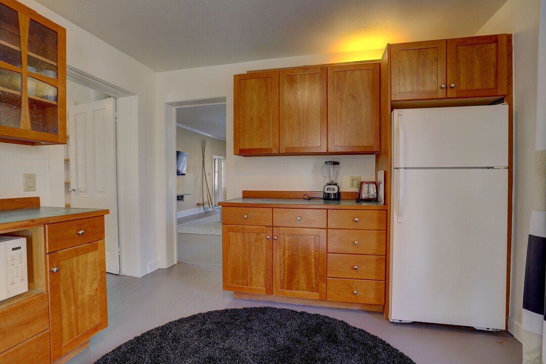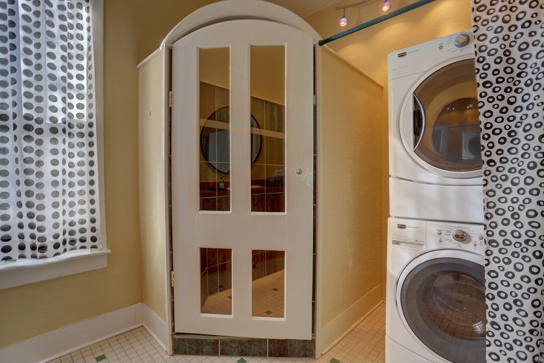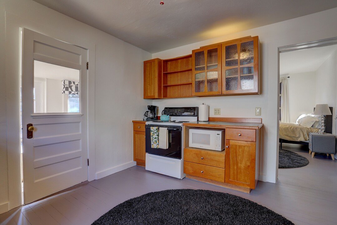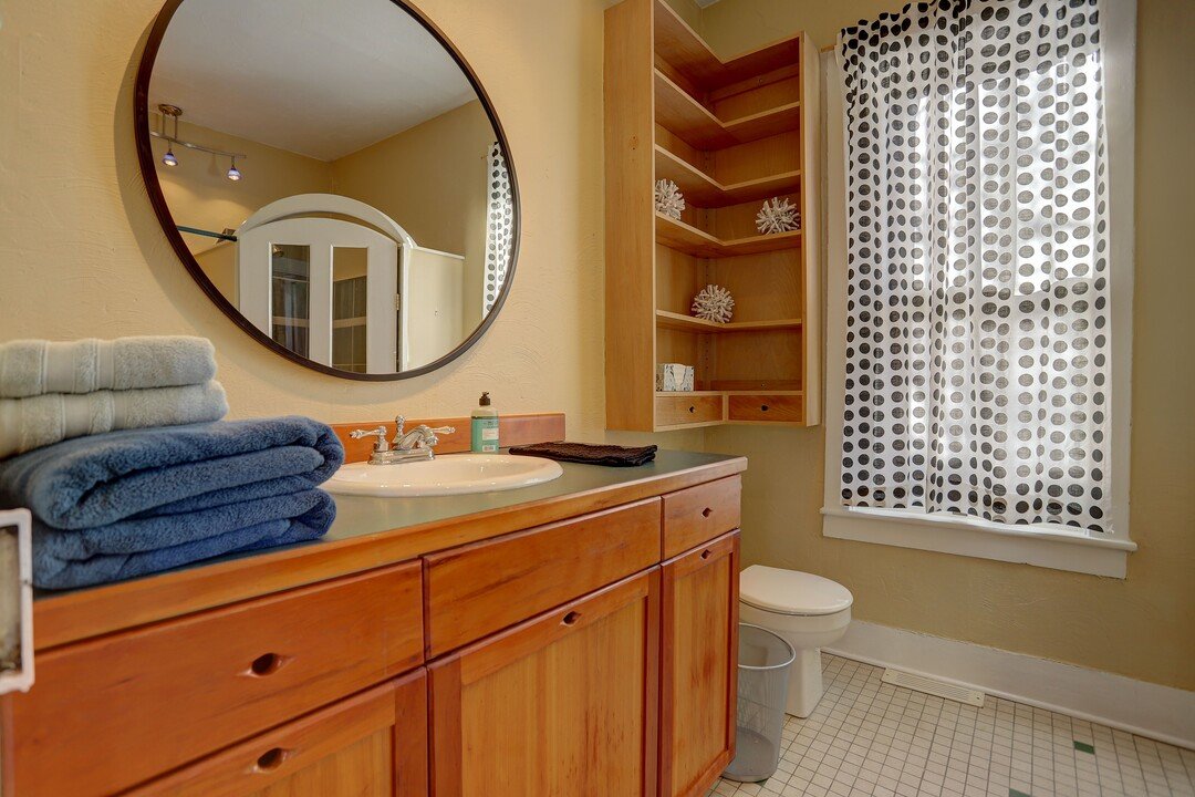 The home features handcrafted details, hardwood floors, cherry cabinets, a soaking tub, loft for sleeping or storage, and an open backyard and friendly neighborhood front porch. Bring your furry friend! We are also pet-friendly and accept approved dogs.